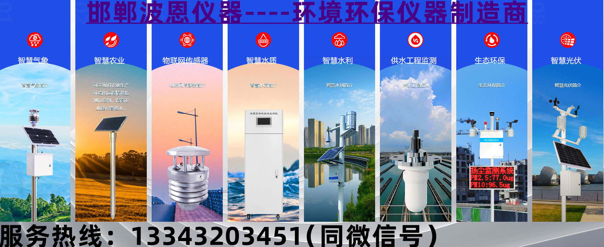 自動氣象站、交通隧道環境監測站、土壤墑情監測系統、水產養殖監測系統、農業氣象監測系統、揚塵噪聲監測系統等解決方案幾十種。